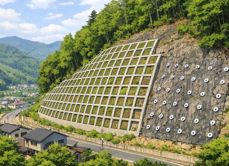 急傾斜地工事とは?がけ崩れから暮らしを守る、日さくの特殊土木技術