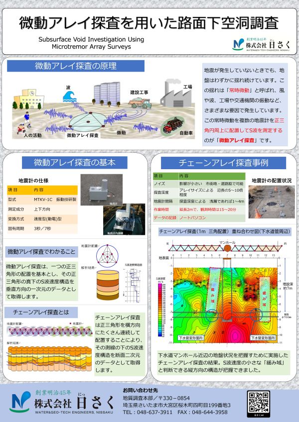 日さくの微動アレイ探査や路面下空洞調査についてもっと知りたい方は、お気軽にお問い合わせください。